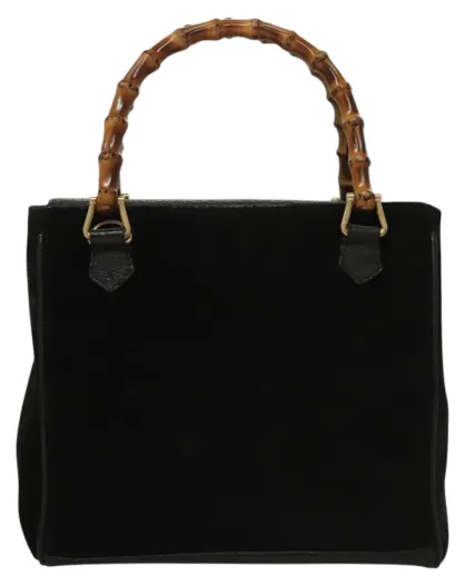 Vintage-Tragetasche aus Bambus mit Fronttasche Schwarz - 20x18x11 cm - Guter Zustand
