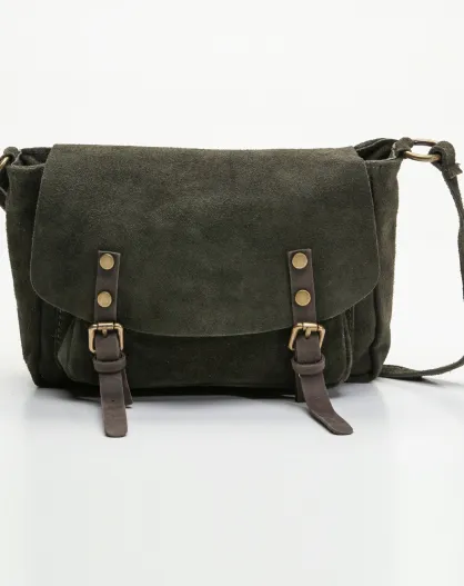 Katya Schultertasche aus Samtleder in Petrolgrün, 24 x 18 x 7,5 cm