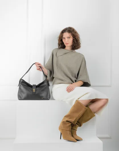 Ellad Schultertasche aus schwarzem Leder - 25x29x9 cm