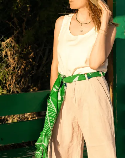 Quadratische grüne Tulpe aus 100% Bio-Baumwolle - 130x130 cm