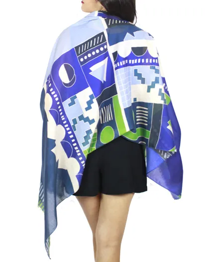 Pop-blaue Stola aus 100% Bio-Baumwolle, 200 x 100 cm