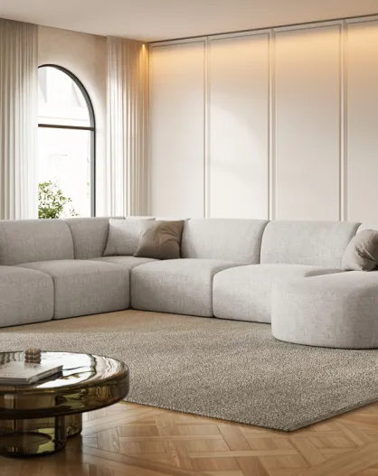 Talia Modulares Ecksofa mit Panoramablick für links, für 7 Personen, 330 x 255 x 70 cm, hellbeige