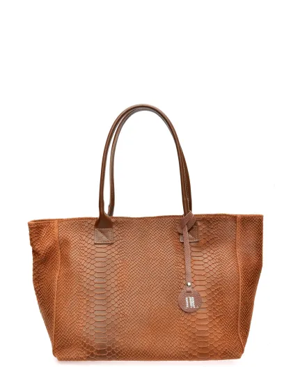 Aurora Croco Tragetasche aus braunem Leder, 28 x 36 x 16 cm