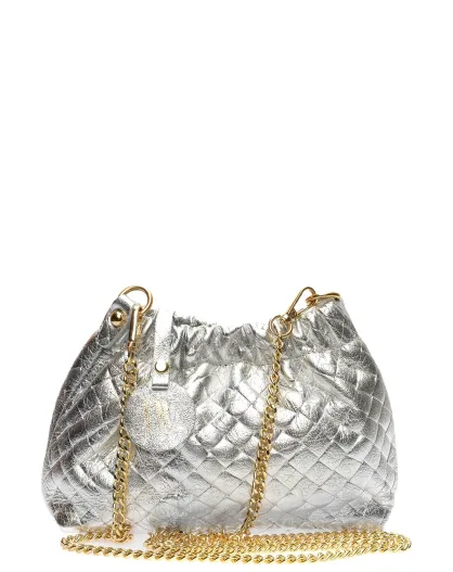 Schultertasche Anita aus silberfarbenem Leder - 14x22x6 cm