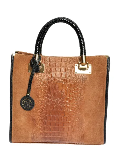 Cyrah Cognac Handtasche aus Veloursleder, 28,5 x 29,5 x 12 cm