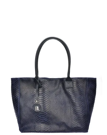 Aurora Croco Tragetasche aus blauem Leder, 28 x 36 x 16 cm
