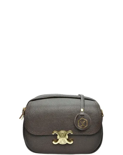 Elina Schultertasche aus dunkelbraunem Leder - 17x22x7 cm