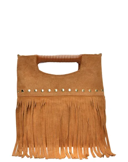Eleonora Handtasche aus Veloursleder, 24,5 x 27,5 x 7 cm, Cognac