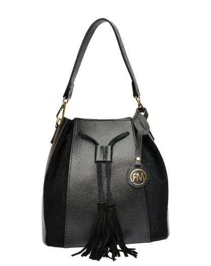 Isabella Beuteltasche aus Leder, 25 x 24 x 12,5 cm, Schwarz