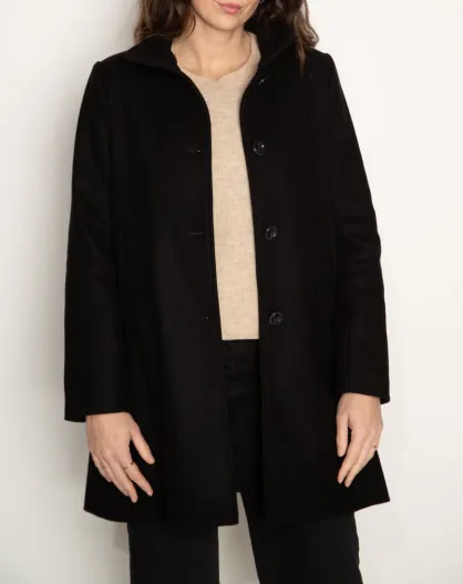 Schwarzer Mantel aus Wollmischung mit hohem Kragen von Boval