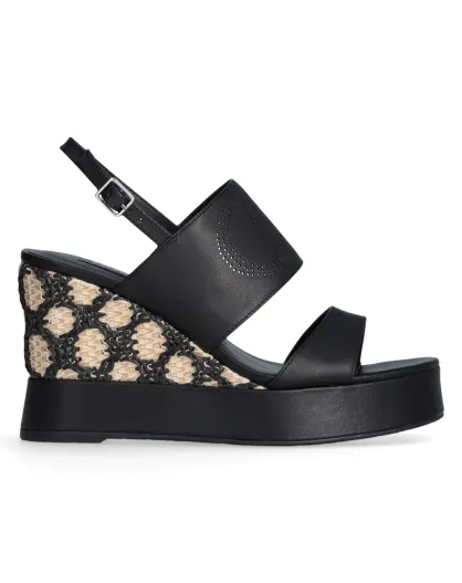 Karen Keilsandalen aus Leder in Schwarz