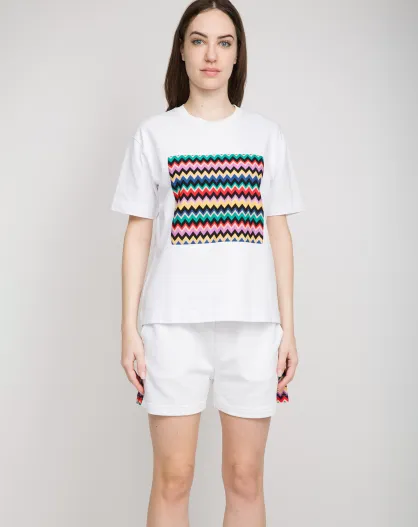 Yolande weißes Chevron-Kurzarm-T-Shirt