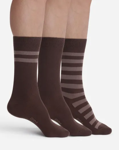 3 Paar Baumwollsocken im schokoladenfarbenen Streifenstil