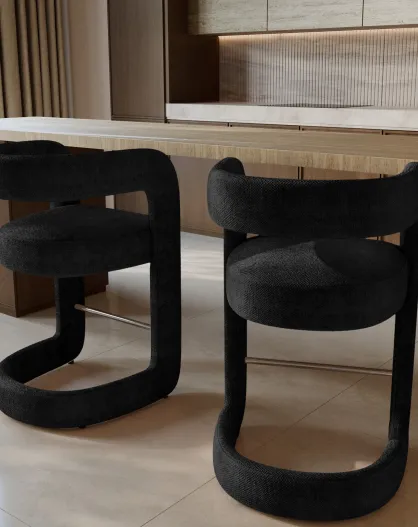 KLAY Hocker aus schwarzem Chenille-Samt, 52 x 59 x 85 cm, 2 Stück