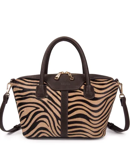 Julya Fur Einkaufstasche im Zebra-Design, 34 x 27 x 16 cm, beige