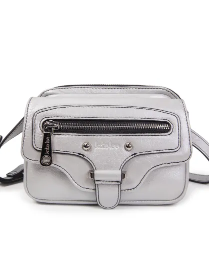 Hena Z Schultertasche aus grauem Leder - 17,5x10x6 cm