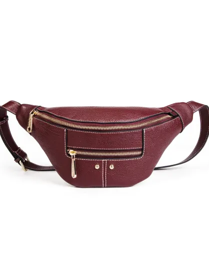Burgunderrote Gürteltasche aus Leder — 20x12x6 cm