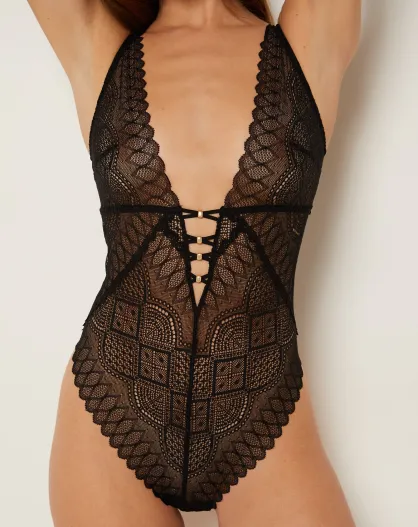 Intensiver schwarzer, einteiliger Body ohne Bügel