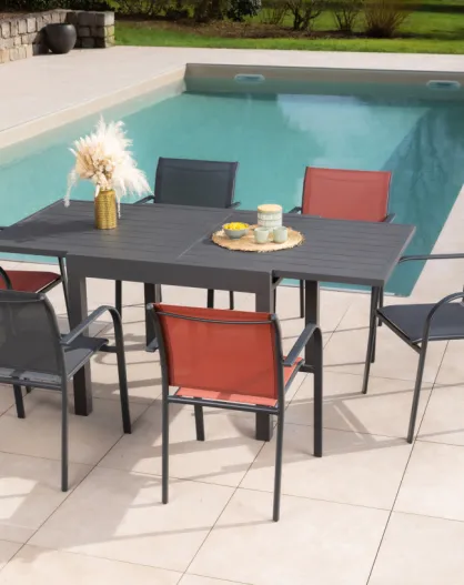 Essgruppe Honfleur aus Aluminium: 1 Tisch und 6 Beziers, grau/terrakotta