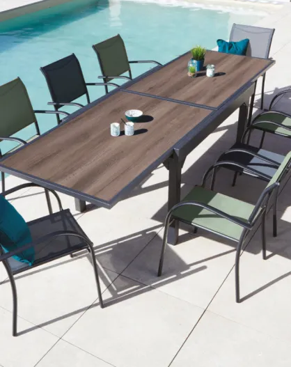 Essgruppe Honfleur XL aus Eichenholz: 1 Tisch und 2 Stühle Beziers in Anthrazit und Salbeigrün
