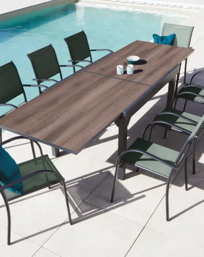 Essgruppe Honfleur XL aus Eichenholz: 1 Tisch und 8 salbeigrüne Stühle