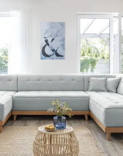 Dazzling Daisy Hellgraues, umwandelbares Ecksofa für links, 8 Personen, 330 x 190 x 77 cm