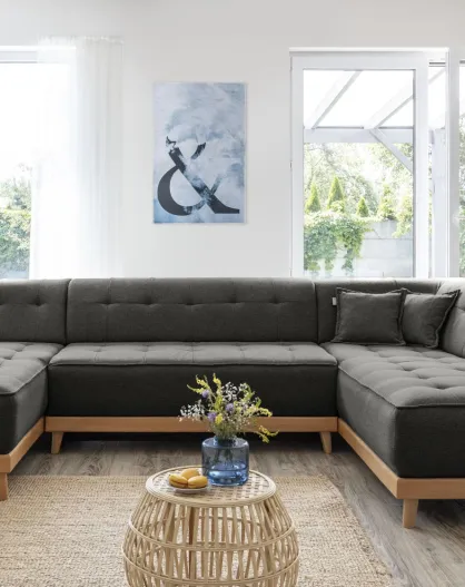 8-plättriges ausziehbares linkes Ecksofa Dazzling Daisy Anthracite- 330x190x77 cm