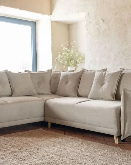 Ecksofa L, umwandelbar, linke Ecke, Lazy Lukka, Beige, 247 x 191 x 85 cm