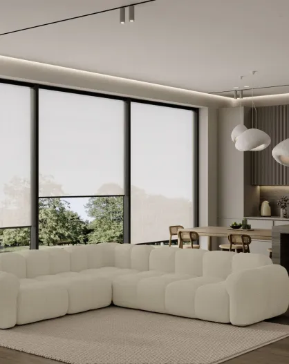 L-MAX Festes Ecksofa, Symmetric Cloud Beige — 260 x 260 x 76 cm