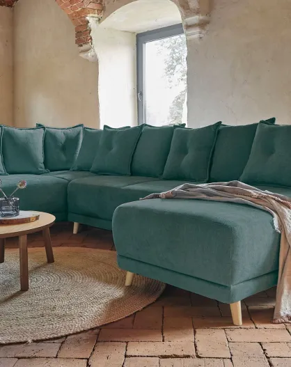 U-Ecksofa umwandelbar linke Ecke Lazy Lukka Türkis- 320x191x85 cm