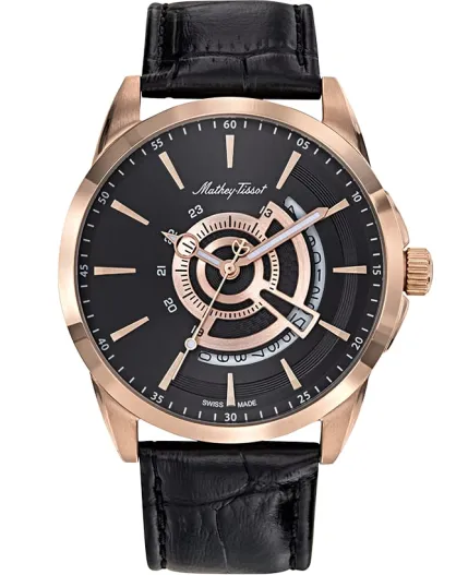 RONDA 515 Quarz-Herrenuhr aus schwarzem Leder, hergestellt in der Schweiz