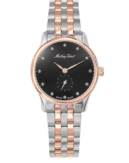 RONDA 1064 Quarzuhr für Damen, hergestellt in der Schweiz, aus zweifarbigem Silber-/Rotgoldstahl