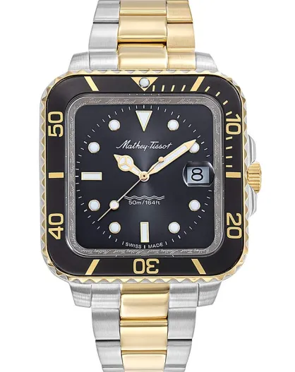 Ronda 505h3 Quarzuhr für Herren, hergestellt in der Schweiz, aus zweifarbigem Stahl in Silber/Gold