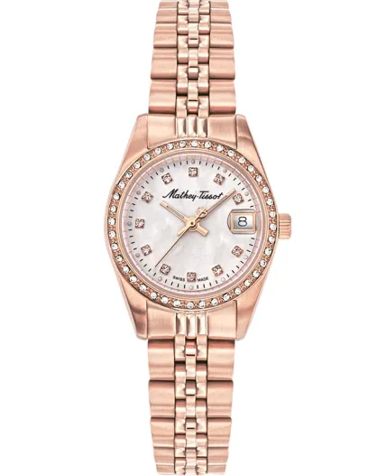 RONDA 585 H3 Quarzuhr für Damen, hergestellt in der Schweiz, aus roségoldenem Stahl