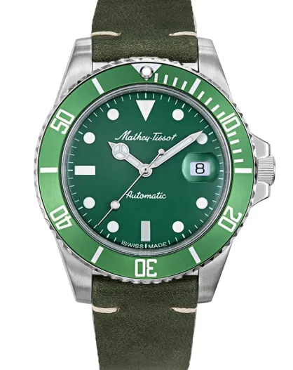 Swiss Made Automatic STP 1-11 Herrenuhr aus grünem Leder