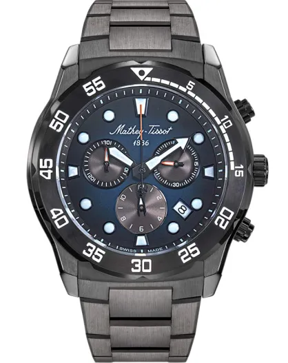 RONDA 5030D Quarzuhr für Herren, hergestellt in der Schweiz, aus schwarzem Stahl