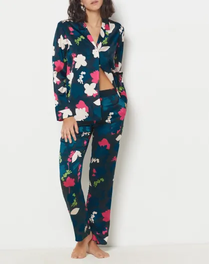 Hose mit Blattblau-Print