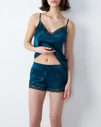 Milchige Shorts, gedruckt auf grünem Hintergrund