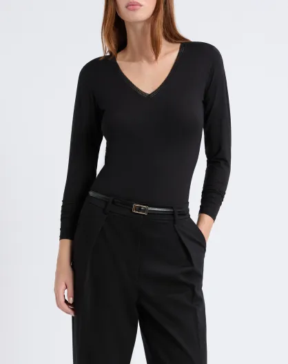 Warm Me Up Schwarzes Spitzen-T-Shirt