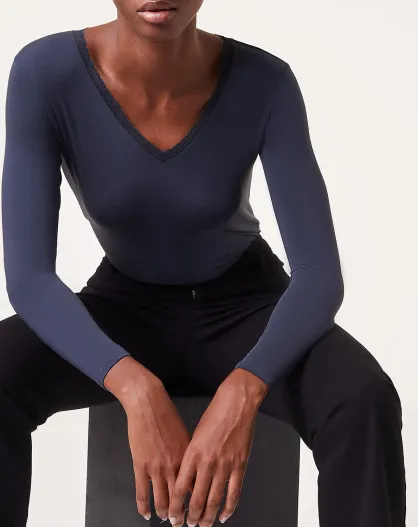 Warm Me Up Marineblaues Spitzen-T-Shirt