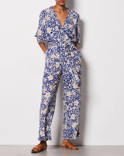 Baya Overall mit Blumendruck auf blauem Hintergrund