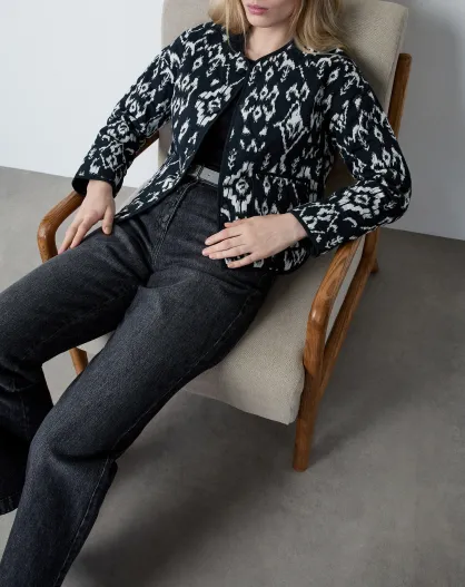 Etienne-Jacke gedruckt auf schwarzem Hintergrund