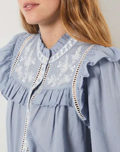 Himmelblaues besticktes Hemd Helena