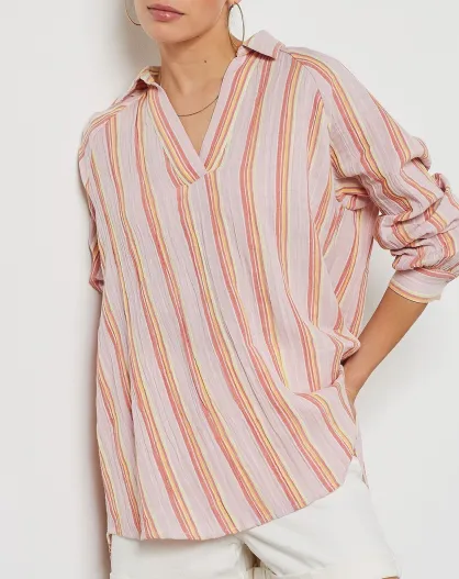 Figurgraue Bluse mit pinkem Hintergrunddruck