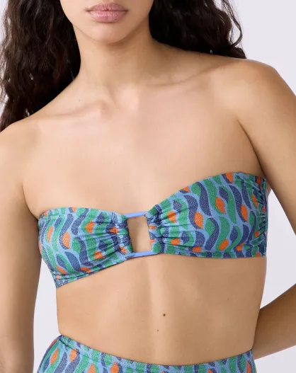 Bandeau-BH ohne Bügel und Sao-Muschel-Print auf violettem Hintergrund
