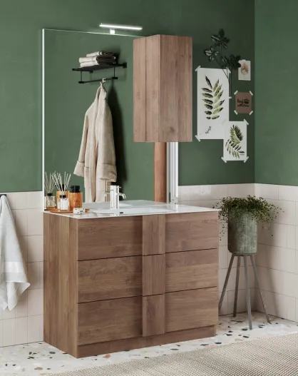 Jessie - Badmöbel auf Beinen aus Mercure-Eiche - 3 Schubladen und integriertes Keramikwaschbecken - 82x86x47 cm