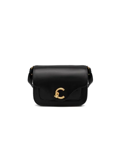 C-Me Schultertasche aus glattem schwarzem Kalbsleder - 21x17x6 cm