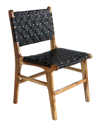 2 Perugia-Esszimmerstühle mit schwarzen Lederbeinen aus Teakholz - 53x51x87 cm