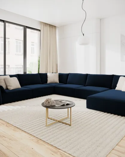 Panorama-Ecksofa (rechte Seite) Vanda Velvet 8-Sitzer Königsblau — 384 x 284 x 85 cm