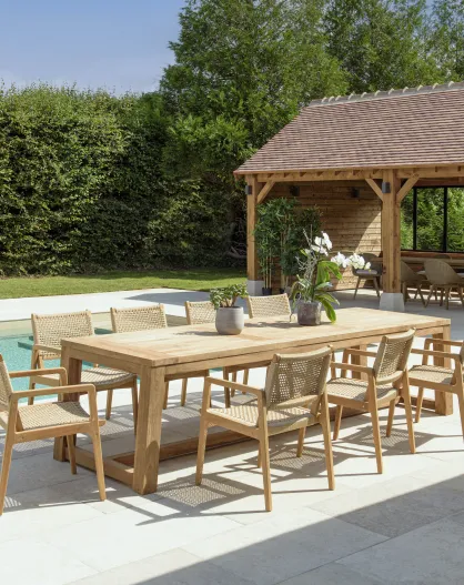 Gartenmöbelset 8/10 Personen - 1 rechteckiger Esstisch und 8 beigefarbene Gartenstühle